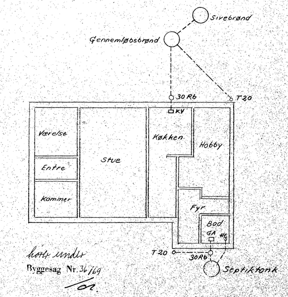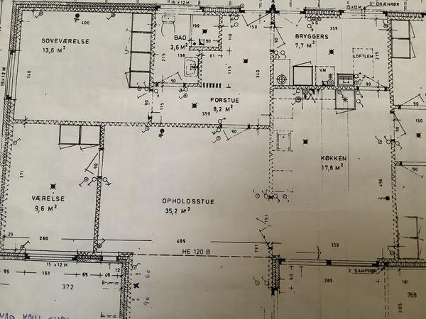 Plantegningen er vedlagt hvor i kan se rummenes fordeling, og placering samt hvor fyrret er placeret.