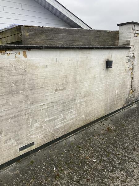 Murværk er krakeleret og skal pudses op igen. Muren er ca. 13 meter og ca. 2 meter hø...