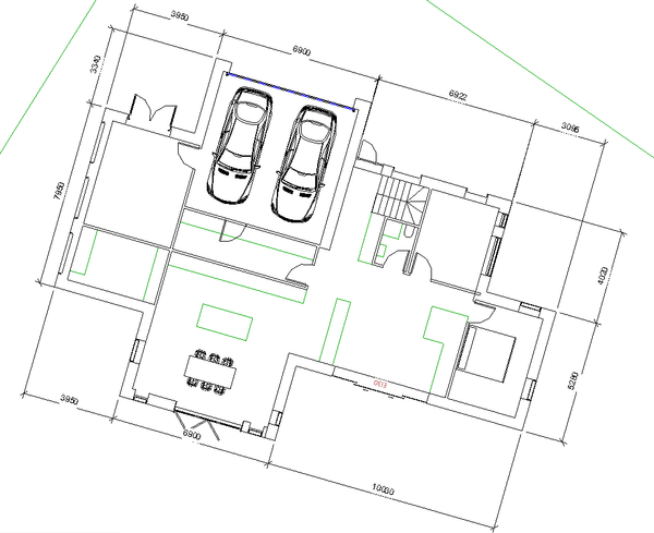 Ca. 20 kvadratmeter overdækning hvor "loft" og en stolpe i træ skal males "Trekanter" i husets begge ender i træ samt garage med udhæng i træ. Port skal også males, den er dog aluminium. Vi har ikke andre billeder udvendigt end Google Maps.