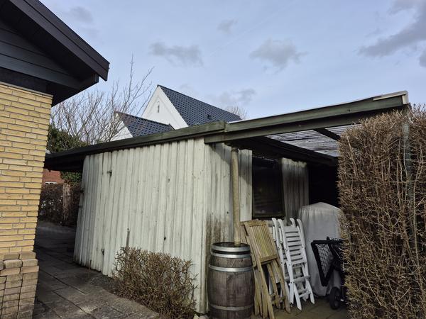 Renovering af carport. Udskiftning af 3 bærende bjælker fastgjort til husmur. Nuvære...