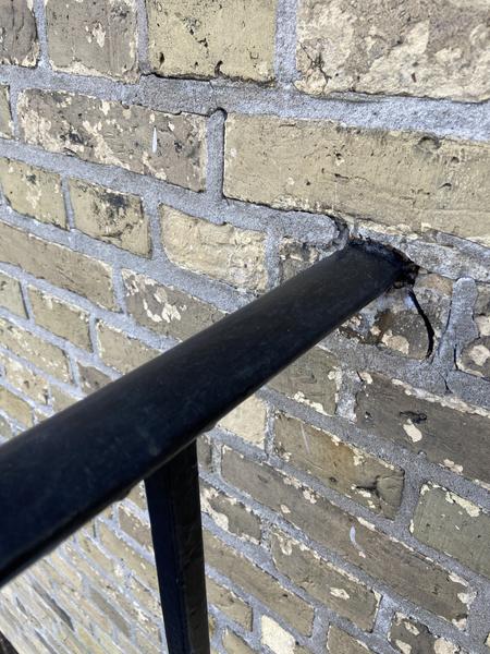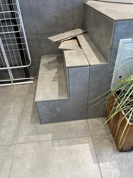Udskiftning af trappeflise, som er knækket. Der er forkert understøttet trappetrin, s...