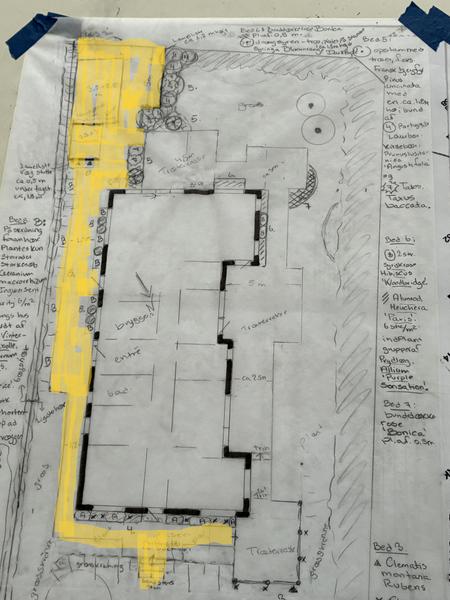 Opbygning af støttemur der skal kunne holde træterrassen fra at falde sammen. Det er ...