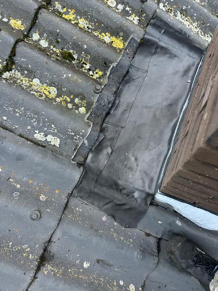 Udskiftning af krave rundt om skorsten på skråt tag 1 meter bred og 1,5 m lang Skorst...