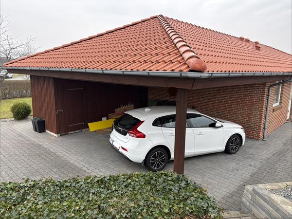 Vi vil gerne lukke carporten for at lave en garage. Så to døre eller en stor dør foran og en væg til højre.