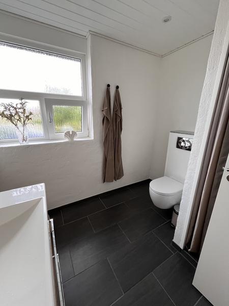 Nye klinker i badeværelse og bryggers ca 20 kvadratmeter, sæbe væg i badeværelse, unidrain vi sørger selv for vvs’er vi tager selv klinkerne ned og har selv klinker.