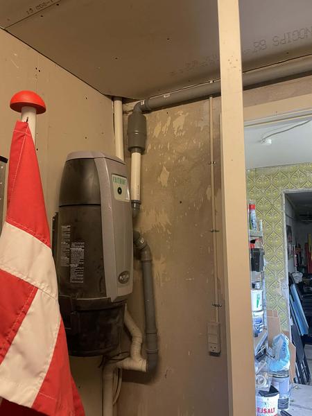 Skiftet fra naturgasfyr til fjernvarme. Gammel skorsten som var til oliefyr og senere...