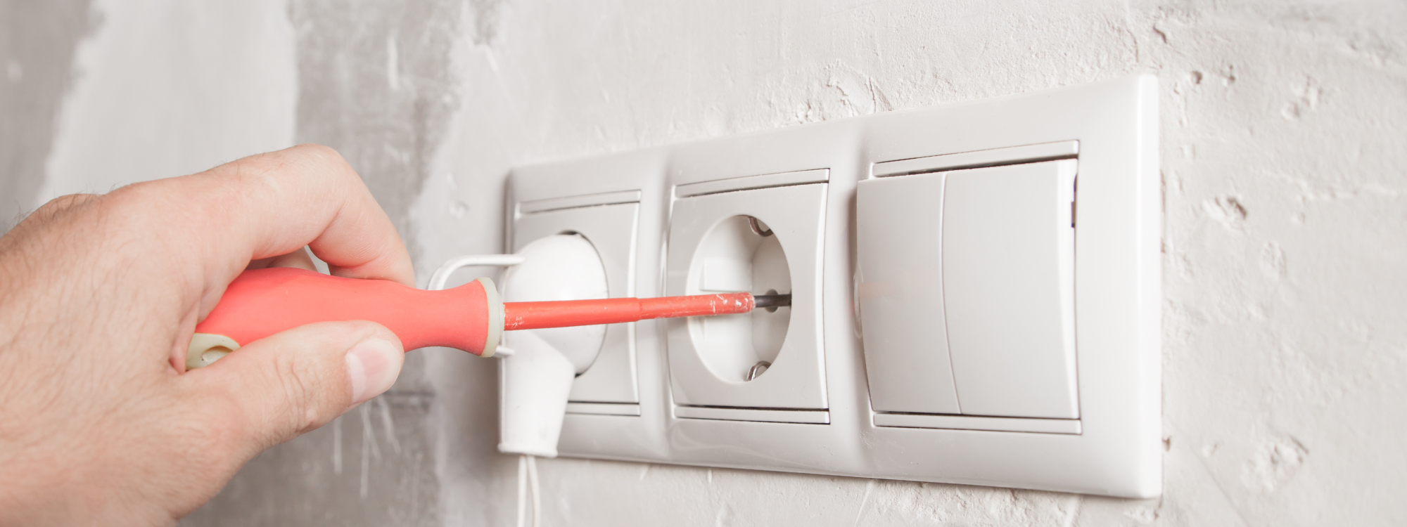 Teknikeren kom og installerede stikkontakter i vægge i stue. Underlaget var lidt ujævnt og svært at arbejde med, da det er et gammelt hus, men teknikeren fandt gode og solide løsninger.